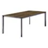 Sehr natürlich gehalten ist das Gestell des Tisches aus Teakholz gefertigt. Optisch ist das Gestell in Natur gehalten. Die Tischplatte ist aus edlem Keramik gefertigt. Im Gegensatz zu vielen anderen Tischplattenmaterialien sind Keramikplatten äußerst kälte- und hitzebeständig und zählen somit zu den robustesten Tischplatten auf dem Markt. Für ein elegantes Gesamtbild erscheint die Platte in der Farbe Basalt. Als klassische Design-Komponente fungiert das geradlinige Vierfußgestell. Mit der rechteckigen Form lässt sich der Gartentisch platzsparend in Ecken oder an Häuserwänden aufstellen.