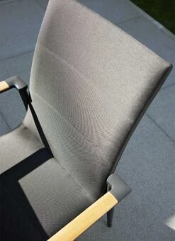 Das Gestell wird aus Aluminium in der Farbe Anthrazit gefertigt. Das geringe Eigengewicht des Materials macht den Stapelsessel zu einem robusten, aber dennoch leicht zu transportierenden Sitzmöbel auf Ihrer Terrasse.