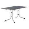 Als Material des Gestells dient wertiges Aluminium. Die stabile Tischplatte aus leicht zu pflegendem HPL-Kunststoffverbund ist gerade für Veranstaltungen unter freiem Himmel und das Essen draußen außerordentlich gut geeignet. Farblich sind Gestell und Tischplatte einheitlich gestaltet und begeistern in Anthrazit. Das klassische Vierfuß-Gestell garantiert Ihnen maximale Beinfreiheit. Der Gartentisch ist klassisch quadratisch gehalten.