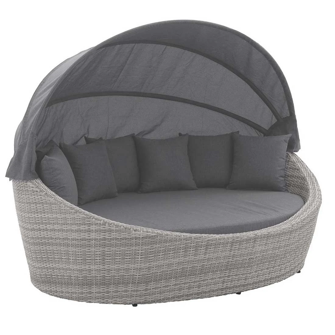 Als Gestellmaterial hat der Hersteller qualitativ hochwertiges Aluminium gewählt. Das Gestell, das mit hochwertigem Polyrattan umflochten ist, bringt ein exklusives Ambiente auf Ihre Terrasse. Dieses Material zeichnet sich durch eine hohe Wetterbeständigkeit aus.