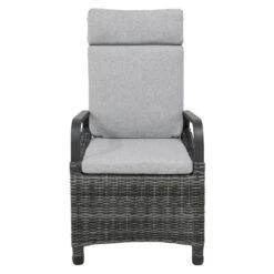 Das Gestell besteht aus pflegeleichtem und wetterfestem Aluminium. Für eine attraktive Optik ist das Gestell im Farbton Anthrazit gehalten. Die Sitzfläche des Gartensessels besteht aus exzellentem Polyrattan. Ein Material, das sich durch seine lange Haltbarkeit auszeichnet. Die Sitzfläche hat eine attraktive Farbgebung in Omega-Anthrazit. Klassisch aus vier Beinen besteht das Gestell des Gartensessels. Als hochwertiges Material für den Bezug kommt ein Polyester-Stoff zum Einsatz. Er ist sehr strapazierfähig und bietet somit die idealen Voraussetzungen für den Einsatz im Freien. Farblich begeistert der Bezug in elegantem Salz & Pfeffer.