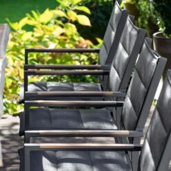 Für die Bespannung der Sitzfläche verlässt sich der Hersteller auf hochwertiges Textilene. Es zeichnet sich durch eine hohe Robustheit gegenüber Hitze und Frost aus und ist leicht zu reinigen. Besonders praktisch: Wenn Sie mehrere Exemplare des Modells Nantes besitzen, können Sie diese äußerst kompakt und platzsparend aufbewahren, indem Sie diese stapeln. Der Stapelsessel hält auch stärkeren Belastungen (bis 140 kg) stand. Der hohe Sitzkomfort ergibt sich auch aus der Sitzbreite von 43 cm und einer Sitztiefe von 45 cm. Unterstützt wird dies zudem durch die bequeme Sitzhöhe von 46 cm.