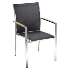 Das Gestell wird aus hochwertigem und rostfreiem Edelstahl hergestellt. Aufgrund des etwas höheren Eigengewichts, steht der Stapelsessel dadurch besonders stabil und windsicher auf der Terrasse.
