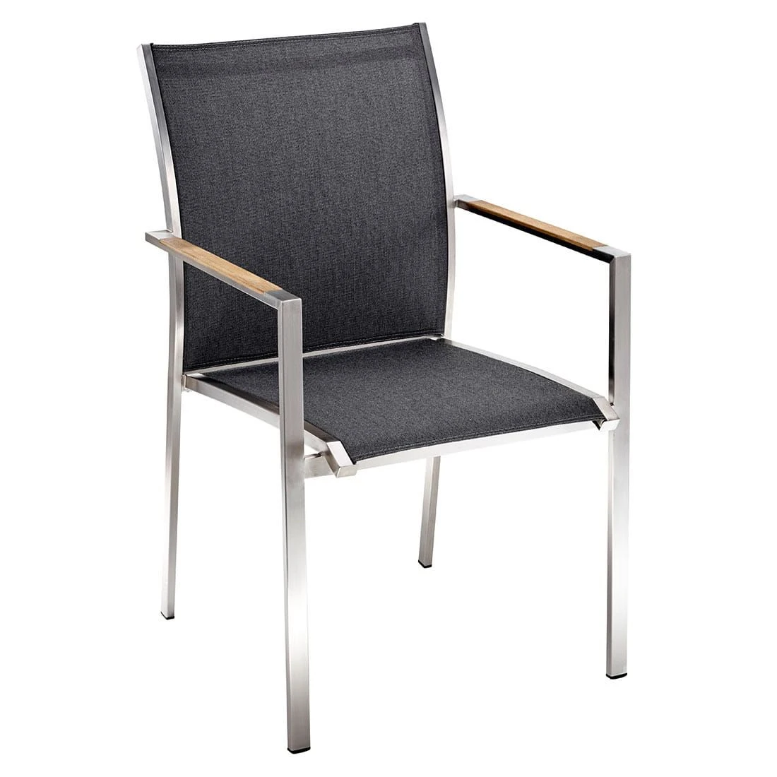 Für die Bespannung der Sitzfläche verlässt sich der Hersteller auf hochwertiges Textilene. Es zeichnet sich durch eine hohe Robustheit gegenüber Hitze und Frost aus und ist leicht zu reinigen. Der Clou: Die Stapelbarkeit des Modells Kreta ermöglicht es Ihnen, auch mehrere Exemplare platzsparend aufzubewahren. Die Sitzfläche hat mit 45 cm eine komfortable Höhe.