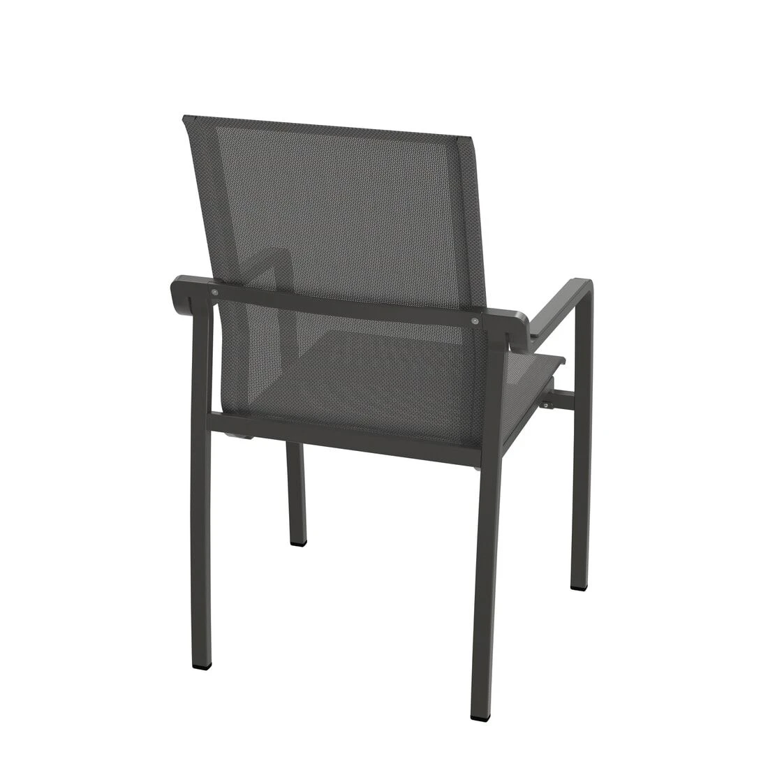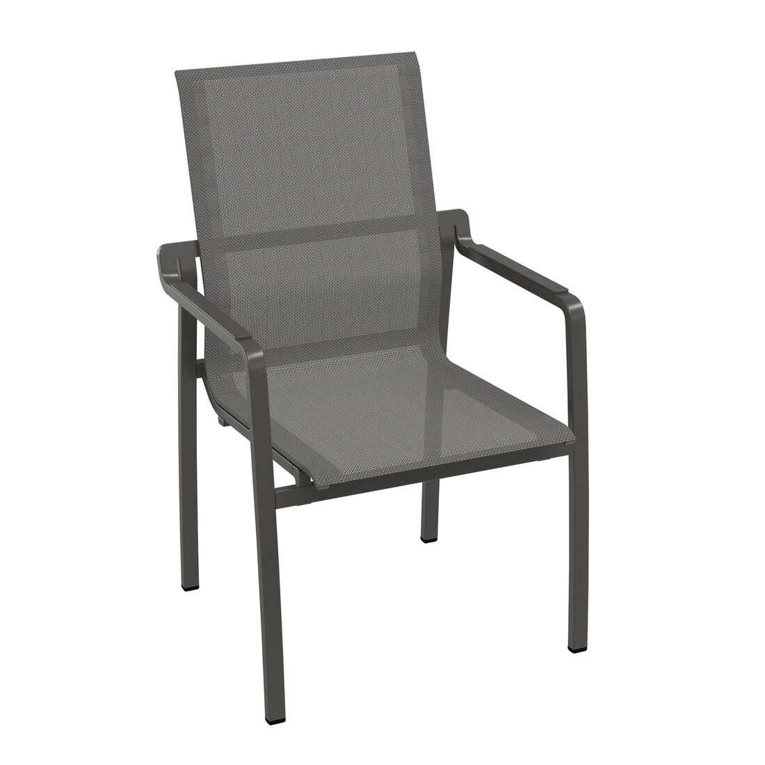 Das Gestell wird aus Aluminium gefertigt. Das geringe Eigengewicht des Materials macht den Stapelsessel zu einem robusten, aber dennoch leicht zu transportierenden Sitzmöbel auf Ihrer Terrasse. Für eine attraktive Optik ist das Gestell im Farbton Eisengrau (Anthrazit) gehalten. Die Sitzfläche ist in ansprechendem Silbergrau gehalten.