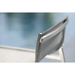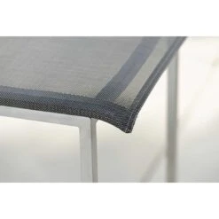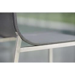 Das Gestell des Garten-Barstuhls besteht aus hochwertigem und pflegeleichtem Edelstahl. Neben seiner ansprechenden Optik bietet dieses Material auch eine hohe Stabilität. Für eine attraktive Optik ist das Gestell im Farbton Silber gehalten. Ein weiteres Highlight des Garten-Barstuhls ist die Bespannung mit Textilene. Dieser Bezugsstoff überzeugt durch eine hohe Robustheit gegenüber Hitze und Frost und ist leicht zu reinigen. Die Sitzfläche ist in ansprechendem Silbergrau gehalten.