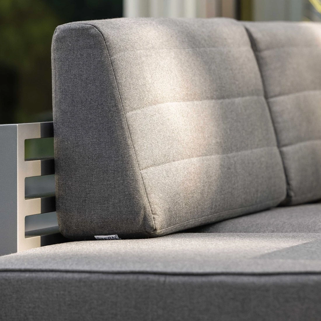 Als Gestellmaterial hat der Hersteller qualitativ hochwertiges Aluminium gewählt. Optisch begeistert das Gestell in der Farbe Graphit. Klassisch aus vier Beinen besteht das Gestell der Dininglounge. Die Dininglounge ist mit einem robusten und wetterfesten Outdoorstoff bezogen. Dieser trotzt Wind und Wetter sehr gut. Wir empfehlen dennoch, die abnehmbaren Kissen bei länger andauernder Feuchtigkeit drinnen zu lagern. Die Farbe des Bezugs ist Silbergrau. Eine herrliche Optik bietet Ihnen die Tischplatte aus HPL-Kunststoffverbund. Diese Tischplatte ist dabei beständig gegen Frost und Hitze bis maximal 180 °C. Farblich überzeugt die Tischplatte in Dark Marble.