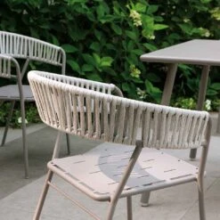 Das Gestell ist mit Rope umflochten und bringt somit ein gemütliches Flair auf Ihre Terrasse.