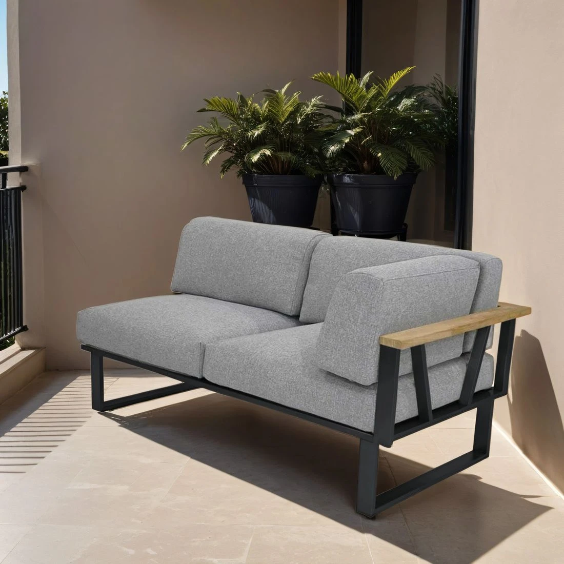 Aufgrund des etwas höheren Eigengewichts, steht das Eck-/Endmodul mit seinem Gestell aus hochwertigem Edelstahl besonders stabil und windsicher auf der Terrasse. Optisch begeistert das Gestell in der Farbe Graphit. Die Sitz- und Rückenfläche ist aus dem Marken-Outdoorstoff Olefin gefertigt. Das Material verbindet eine angenehme Stoffoberfläche mit hoher Witterungsbeständigkeit. Denn sowohl Sonne als auch Regen können dem robusten Outdoor-Stoff kaum etwas anhaben.