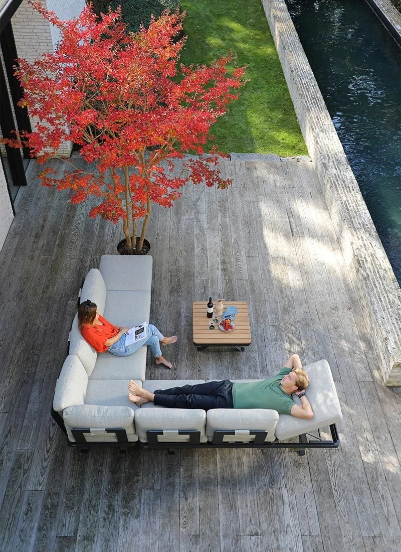 Verlagern Sie das Wohnzimmer nach draußen. Denn mit der gemütlichen Ecklounge Sky von Zebra kreieren Sie sich eine gemütliche Sitzecke, die zum Kuscheln und Feiern einlädt. Der Clou: Neben dem komfortablen Sitzbereich gehört auch ein eleganter Tisch zum Lieferumfang.